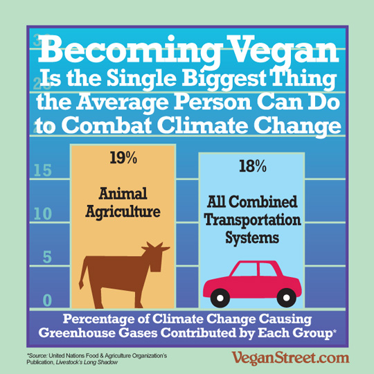 These organizations and many others are unequivocal in their position that animal agriculture is a significant contributor to climate change, placing the consumption of meat, dairy and eggs at least on par with fossil fuel use. At worst, their assessments indicate this consumption is the most damaging thing humanity does to the climate, so damaging that "Livestock and Climate Change" advocates the creation and marketing of meat and dairy analogs (e.g. nut and grain meats, cheeses and milks) to consumers as a means of reducing that damage. How much can a vegan diet mitigate climate change? In a recent study entitled "Dietary greenhouse gas emissions of meat-eaters, fish-eaters, vegetarians and vegans in the UK" the journal Climatic Change reported that meat-eaters have three times the impact on GHG emissions than do vegans, with vegetarians scoring squarely in the middle (a summary of the report can be found here). Perhaps this is why the UN weighed in on the matter in a 2010 report that urged a global shift toward a vegan diet (commentary from The Guardian here).