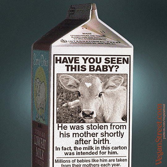 Suffering and death are required components of contemporary milk production. Cows are force-bred annually to produce milk, which translates to well over 200,000,000 calves per year worldwide. Female calves are raised to be milk cows, while male calves are chained in tiny pens where they cannot turn around until they are slaughtered for veal at just a few months of age.