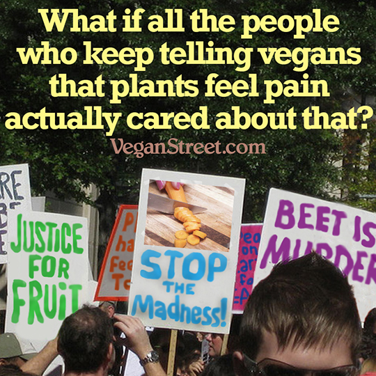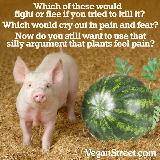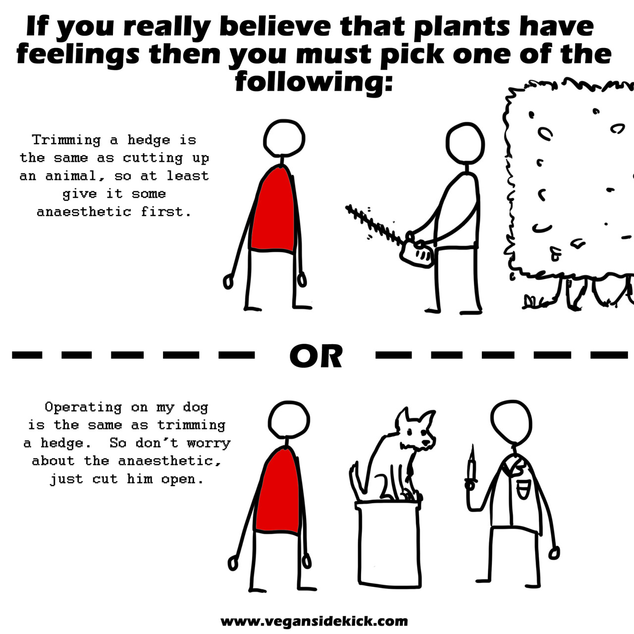 A (potentially) thinking or feeling plant has to be killed in order to eat it just like an animal has to be killed, and there's no difference between the two.