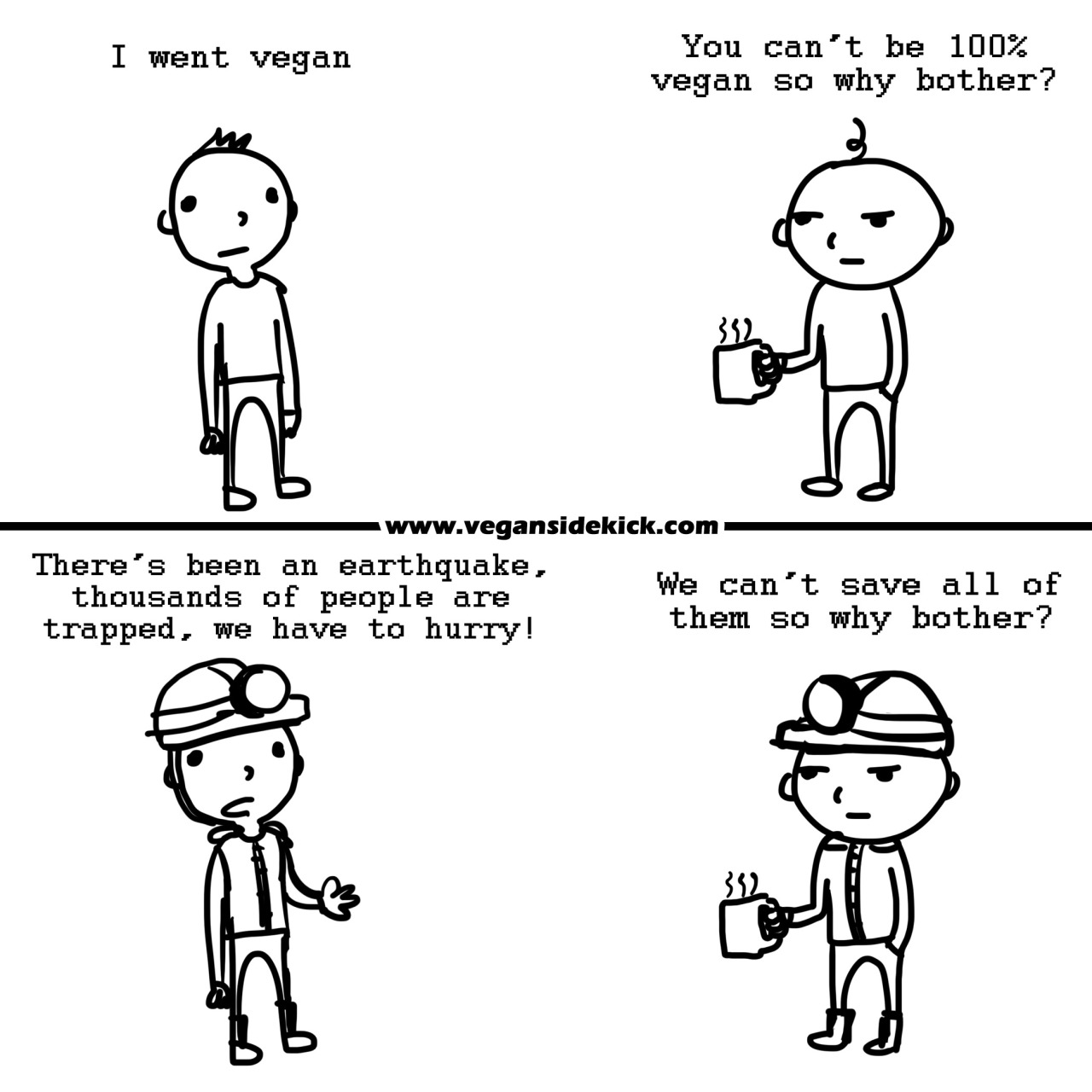 The term 'vegan' is defined as "a philosophy and way of living which seeks to exclude — as far as is possible and practicable — all forms of exploitation of, and cruelty to, animals for food, clothing or any other purpose; and by extension, promotes the development and use of animal-free alternatives for the benefit of humans, animals and the environment. In dietary terms it denotes the practice of dispensing with all products derived wholly or partly from animals." The meaning of the word 'vegan' excludes the possibility of perfection, and vegans themselves understand they cannot hold their philosophical position absolutely. However, this understanding in no way prevents them from making significant, positive changes in the world by choosing not to harm other sentient beings when and where they can. Clearly, anyone who makes this same decision is 100% perfect in their veganism.