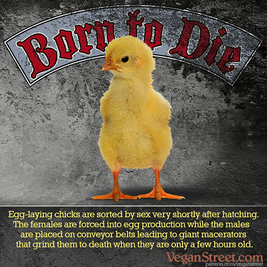I'm sad to say, +Chicken Little, that eggs are much more suffering laden than you realize. The horrors start at hatching, with all the males being disposed of, and usually in torturous ways (e.g. being ground alive for use in chicken nuggets, or being electrocuted, or even thrown in the garbage with the bag tied shut to slowly suffocate to death under the weight of his siblings).