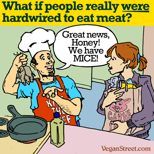 It doesn't matter if humans are actually carnivores, or actually herbivores, or actually omnivores; there is no doubt that humans have been thriving as vegans for many thousands of years, and there's every indication that there have been vegans as long as there have been humans. As such, killing and eating other beings is a choice, and it's a bad choice, and how one makes that choice is the thing we need to be talking about if we want to make the world vegan.