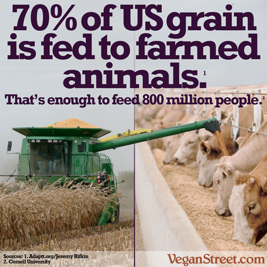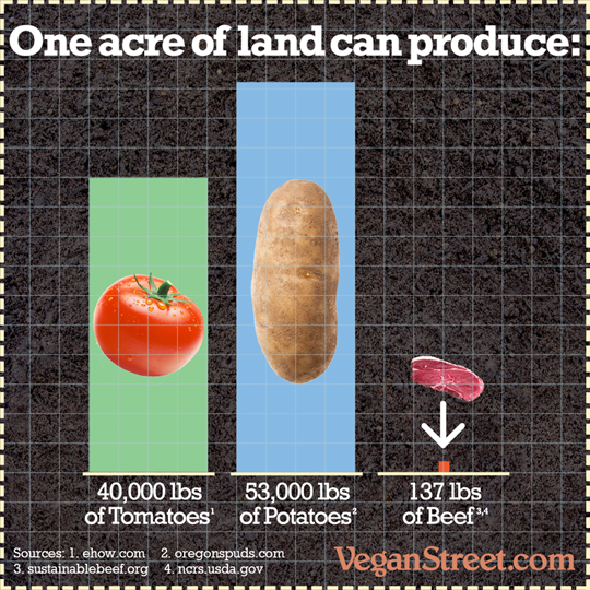 Food scarcity is an argument for veganism, not against it. As the world’s population grows and more people are able to afford meat, less food is available overall. This is because we filter protein and energy-rich crops like soy and grain through animals at a substantial loss before eating them. Depending on the numbers you want to trust and the type of animal it comes from, each pound of meat requires four to thirteen pounds of feed to produce. By switching to a plant-based diet, the farms that presently grow that feed are able to grow food for people instead.