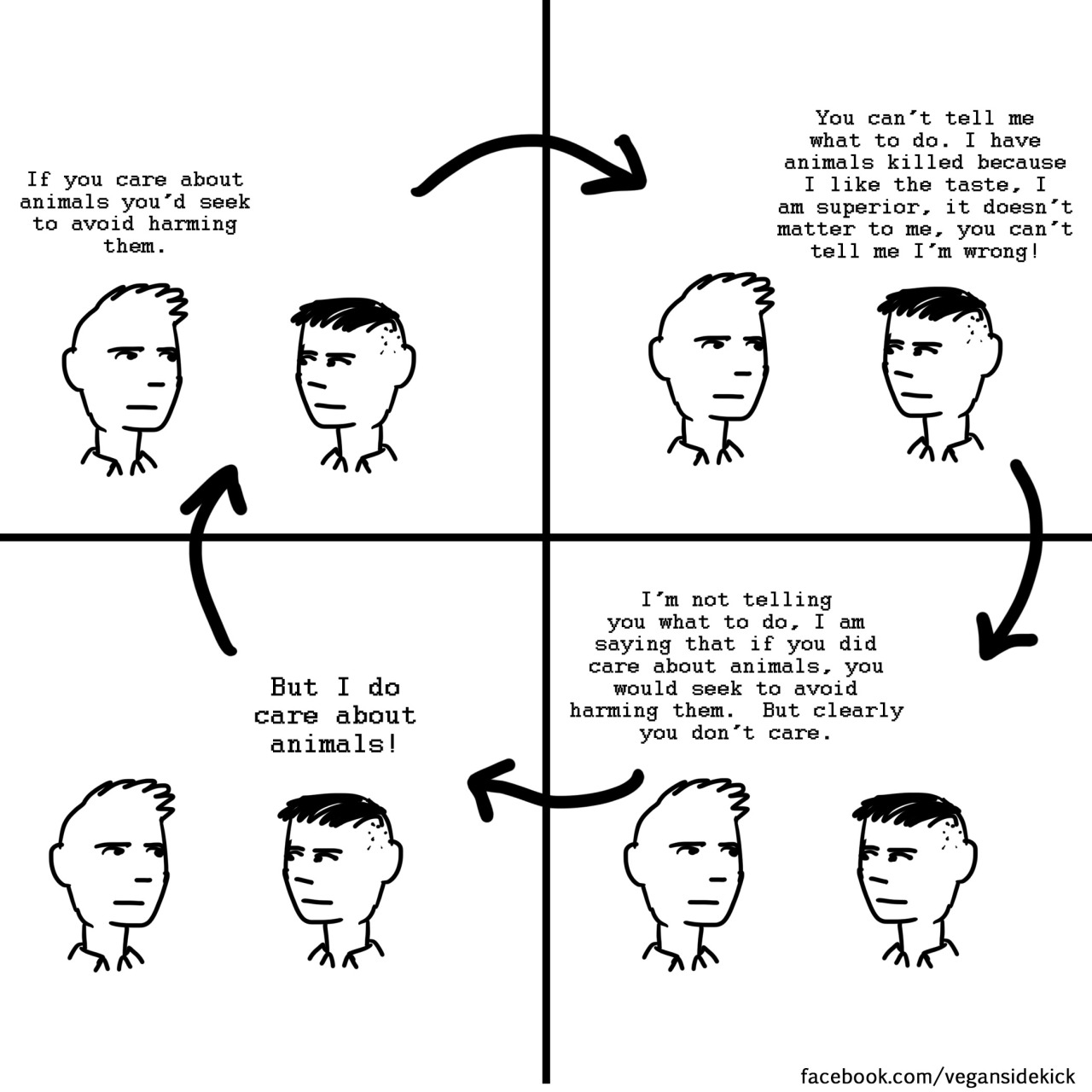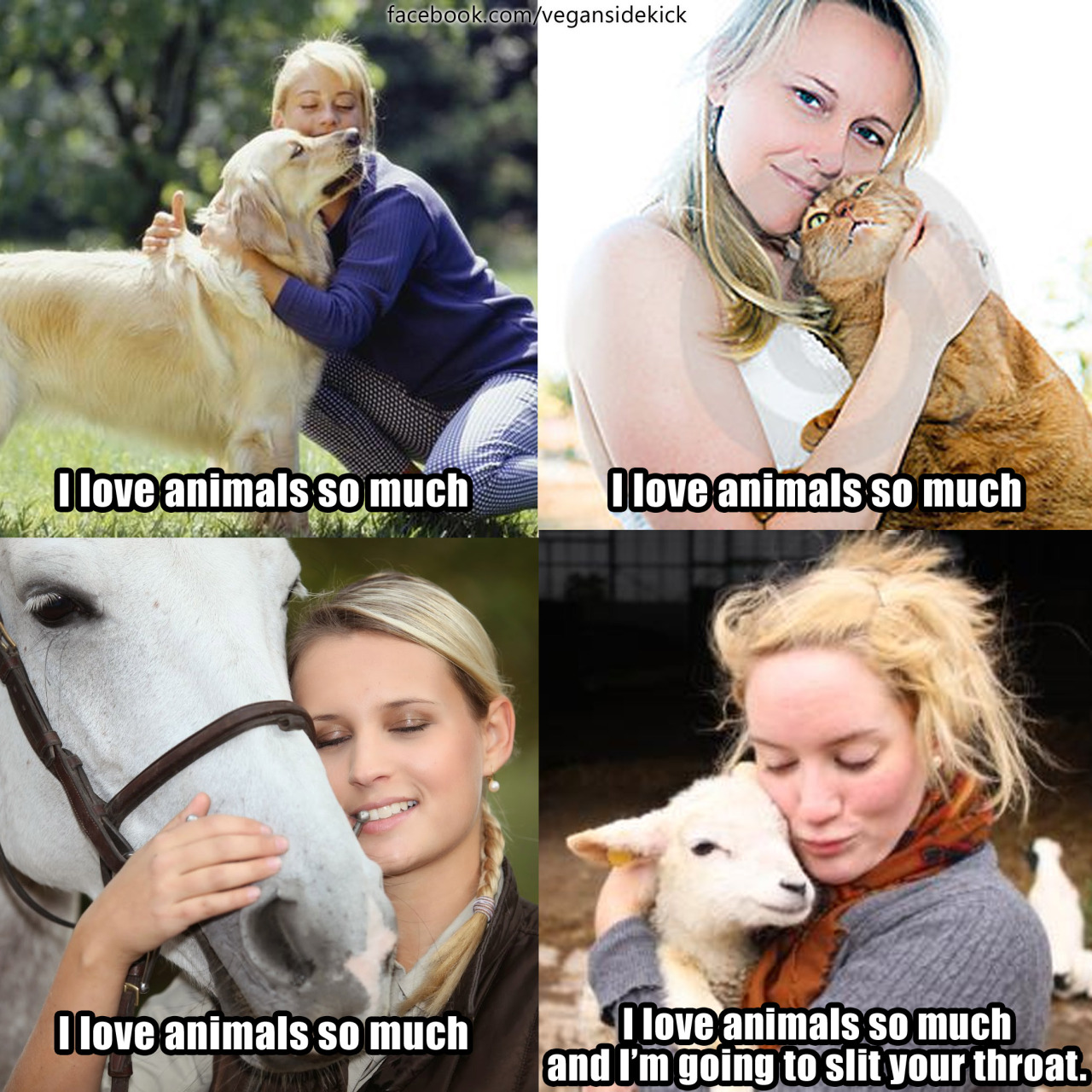 Just as it is not possible to oppress people and still claim to be humanists, we cannot harm animals and still claim to be animal lovers. Love is not expressed for animals by violating and killing them, nor is it expressed by paying someone else to do so on our behalf. At worst, such behavior is an act of hate and at best an act of apathy for the plight of the victims. Love requires that we support and protect those we love, and in the case of animals, it requires that we do not commodify their lives. Rather, we must treat them with dignity in ways that align with their needs and wishes rather than our own selfish desires. Therefore, if we do love animals, then going and staying vegan does a great deal to express that love.