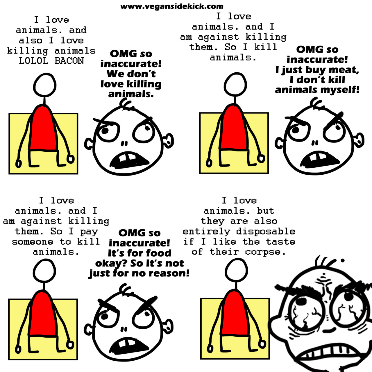 I love animals enough to meet their needs while they are alive, but I also understand they sometimes must be killed in order to meet my needs. So there is no conflict between loving animals and killing them.