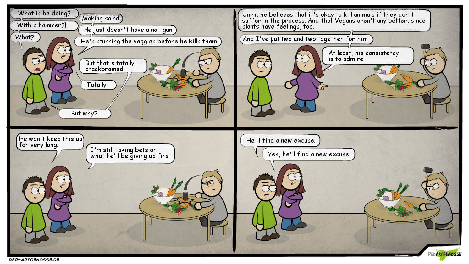 A (potentially) thinking or feeling plant has to be killed in order to eat it just like an animal has to be killed, and there's no difference between the two.