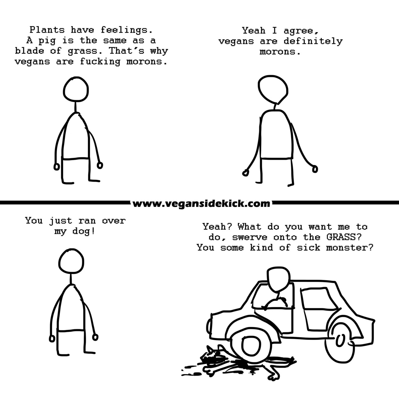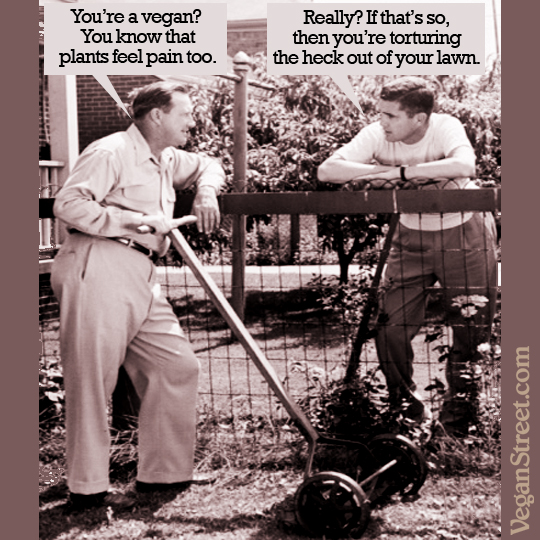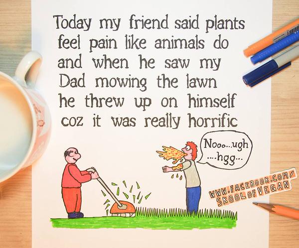 The words 'live', 'living' and 'alive' have completely different meanings when used to describe plants and animals. A live plant is not conscious and cannot feel pain. A live animal is conscious and can feel pain. Therefore, it's problematic to assert that plants have evolved an as-yet undetectable ability to think and feel but not the ability to do anything with that evolutionary strategy (e.g. running away, etc.). Regardless, each pound of animal flesh requires between four and thirteen pounds of plant matter to produce, depending upon species and conditions. Given that amount of plant death, a belief in the sentience of plants makes a strong pro-vegan argument.